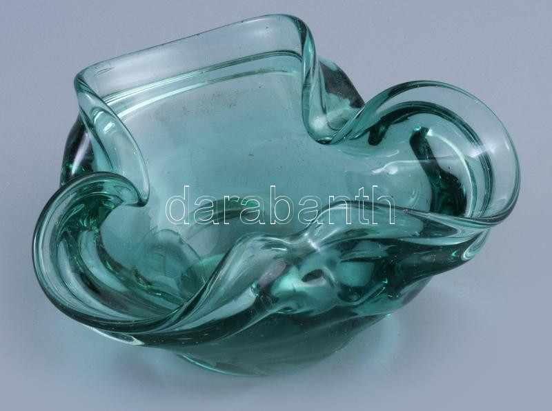 Cseh zöld üveg asztaldísz, d: 14 cm
