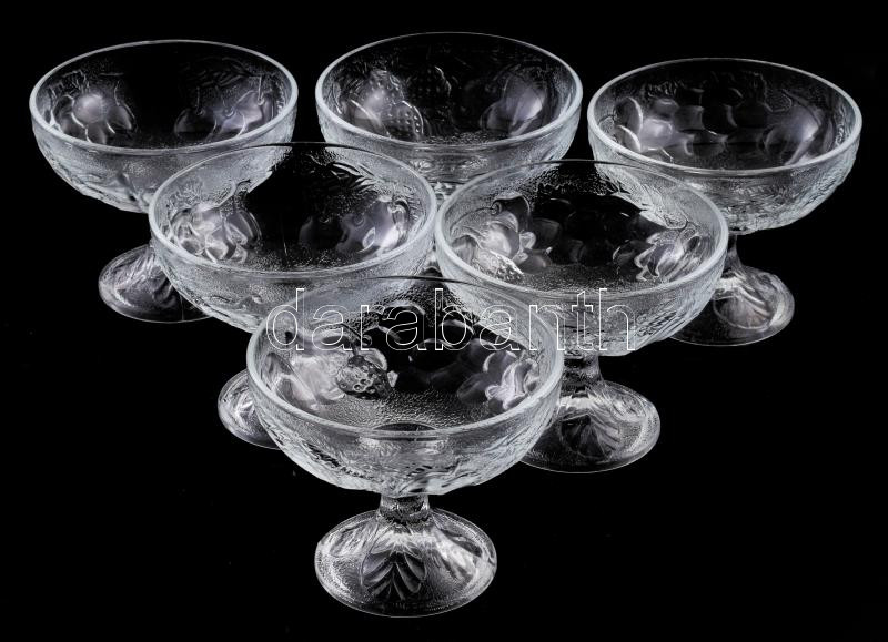 Fagyalaltos kehely garnitúra, domború gyümölcsmintákkal, 6 darab, hibátlan, d: 12 cm, m: 10,5 cm