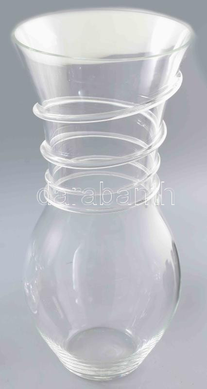 Kézzel készült üveg nagyváza, melegen rátekert üvegszál díszítéssel. Címkével jelzett, hibátlan, m: 40 cm