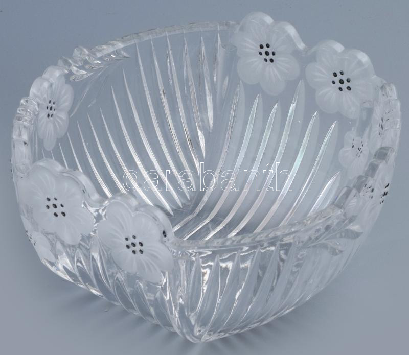 Ólomkristály kínáló. Savmaratott és festett díszítéssel, 17x17,5x10,5 cm