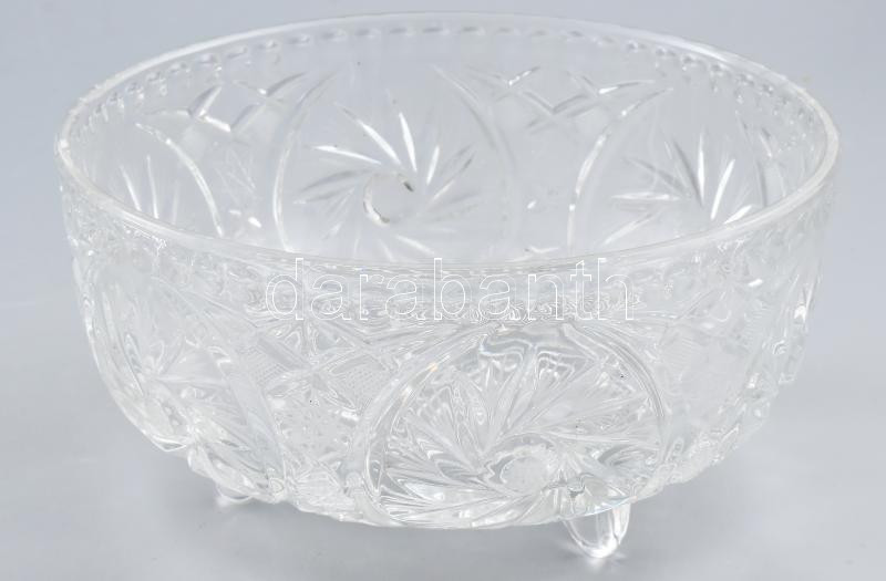 Ólomkristály kínáló, gazdag mintával díszítve, kopással, d: 21,5 cm, m...