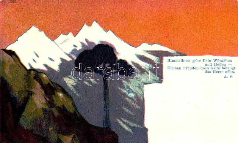 Description: Himmelhoch gehe Dein Wünschen und Hoffen - Kleinen Freuden doch halte beseliget das Herze offen. A.P. / Czech art postcard. Nr. 1008. L.V. Enders'sche Kunstanstalt Neutitschein. litho