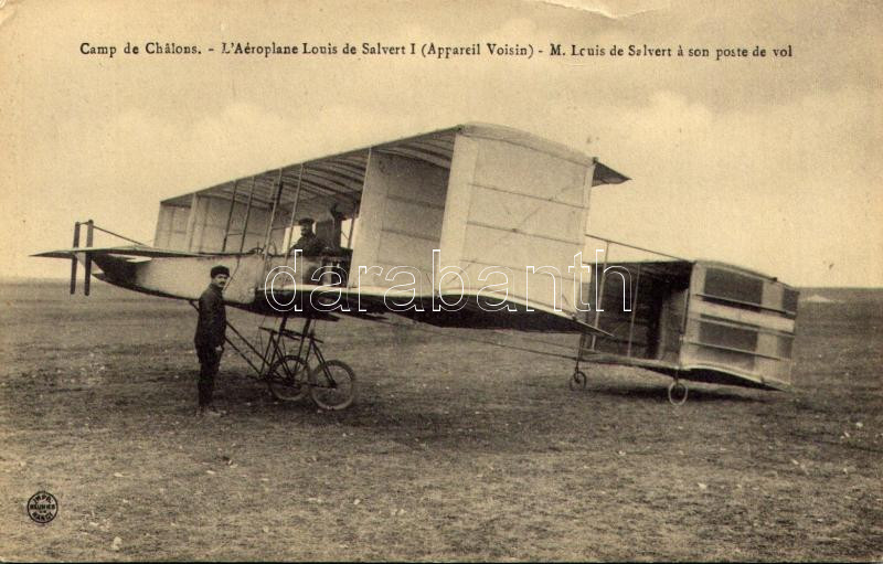 https://www.darabanth.com/en/471-Online-auction/471.0/Postcards/Aviation~2000064/Camp-de-Chalons-LAeroplane-Lous-de-Salvert-I-Appareil-Voisin-M-Louis-de-Salvert-a-son-poste~II3192379