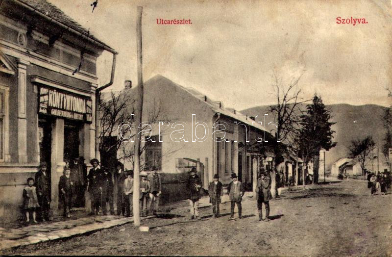 Szolyva, Svalava, Svaljava, Szvaljava, Svaliava; utca, Goldenberg és Hecht könyvnyomdája, üzlete és saját kiadása / street view, publisher's shop (r)
