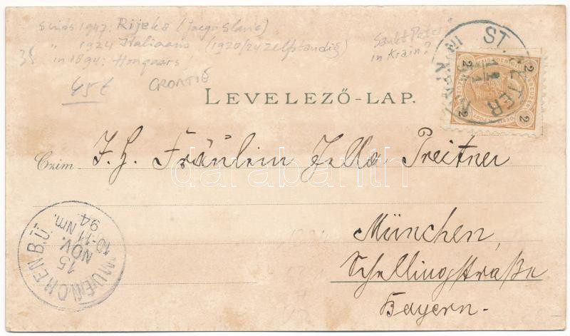 1894 (Vorläufer) Fiume, Rijeka; Corso, Hafen, Tersatto mit Schloss / p... https://www.darabanth.com/en/471-Online-auction/471.0/Postcards/Croatia~2000009/1894-Vorlaufer-Fiume-Rijeka-Corso-Hafen-Tersatto-mit-Schloss-port-Trsat-with-castle-stree~II3189195