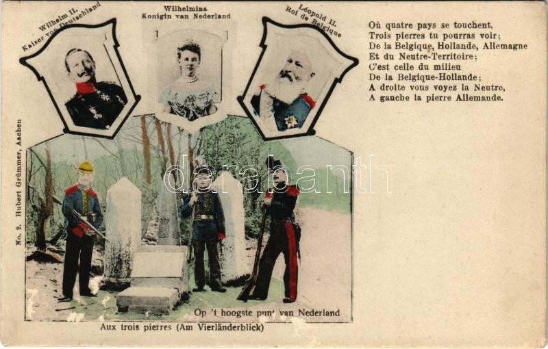 Aux trois pierres (Am Vierländerblick): Wilhelm II, Kaiser von Deutschland, Wilhelmina Königin von Nederland, Léopold II. Roi de Belgique / Németország, Hollandia és Belgium határán az uralkodók arcképeivel / On the border of Germany, Netherland and Belgium with the portraits of their royalties (felszíni sérülés / surface damage)