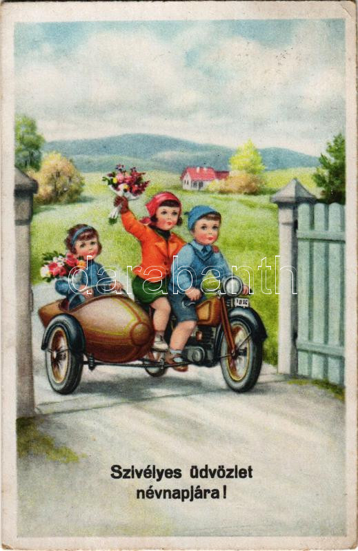 1941 Szívélyes üdvözlet névnapjára. Motorozás / Name Day greeting, mot...