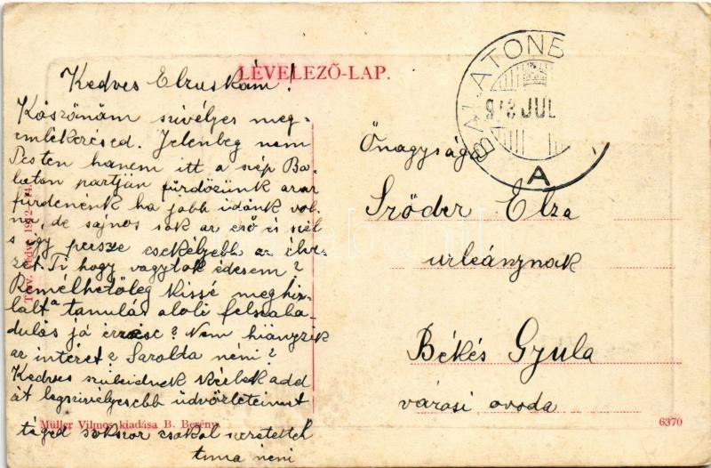 1913 Balatonberény, vitorlás a Balatonon. Müller Vilmos kiadása (W.L. ...