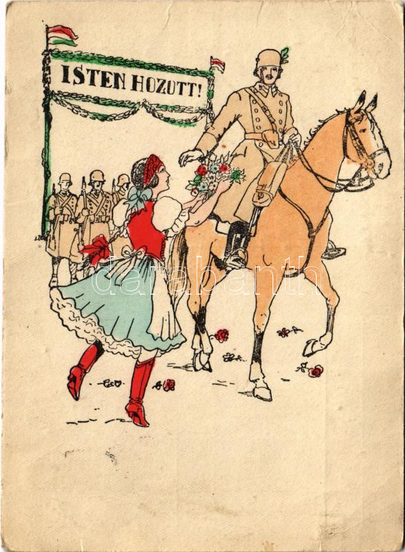 1941 Isten hozott! Bevonulás. Kiadja a Délvidéki Egyetemi és Főiskolai... https://www.darabanth.com/en/471-Online-auction/471.0/Postcards/Irredenta~2000033/1941-Isten-hozott-Bevonulas-Kiadja-a-Delvideki-Egyetemi-es-Foiskolai-Hallgatok-Egyesulete-~II2861908