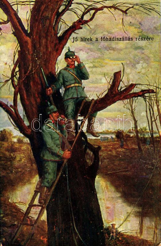 1915 Jó hírek a főhadiszállás részére / WWI German and Austro-Hungarian K.u.K. military art postcard, outpost (EK)