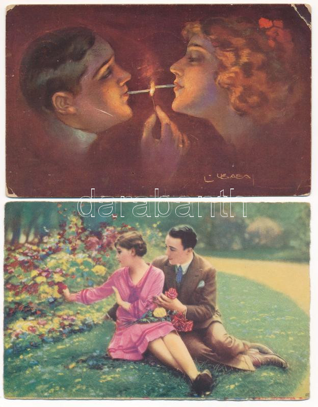 15 db RÉGI zsáner motívum képeslap vegyes minőségben: szerelmes párok / 15 pre-1945 motive postcards in mixed quality: romantic couples in love