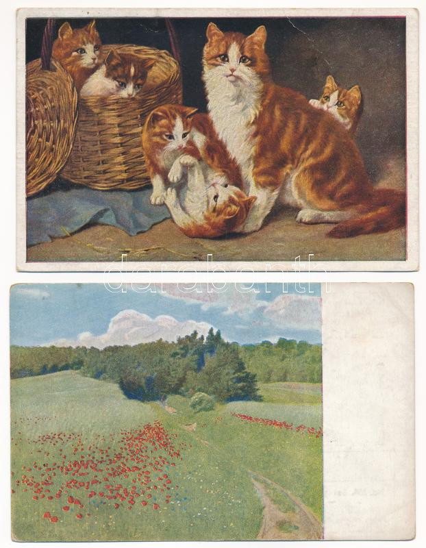 21 db RÉGI művész motívum képeslap vegyes minőségben / 21 pre-1945 art motive postcards in mixed quality