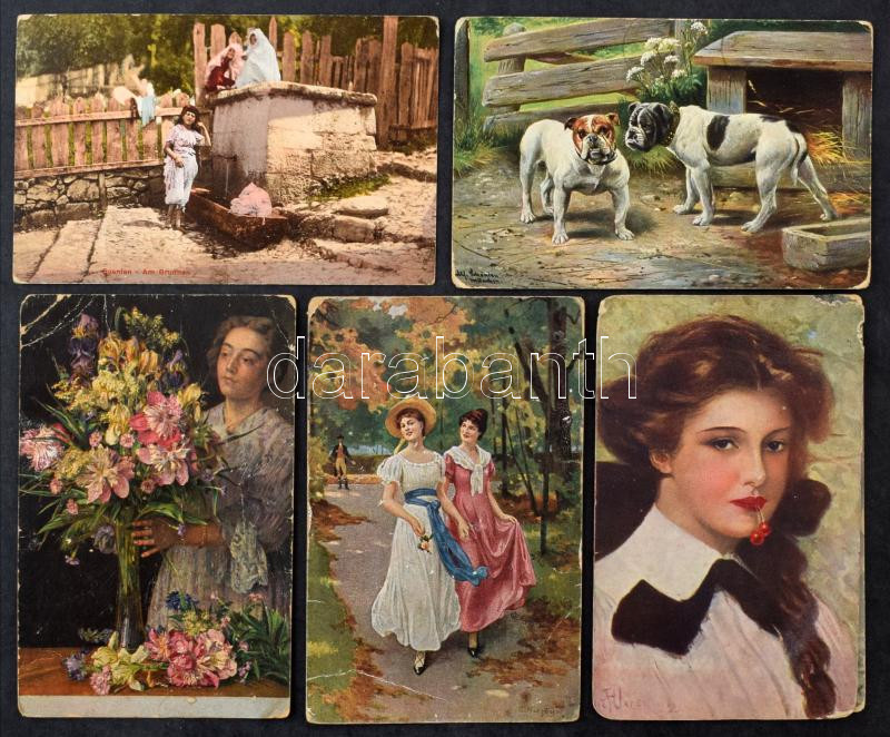 Kb. 200 db RÉGI válogatott motívum képeslap vegyes minőségben: katonai, Napoleon, állat, portrék, művész, üdvözletek / Cca. 200 pre-1945 motive postcards in mixed quality: military, Napoleon, greetings, art, portraits, animal
