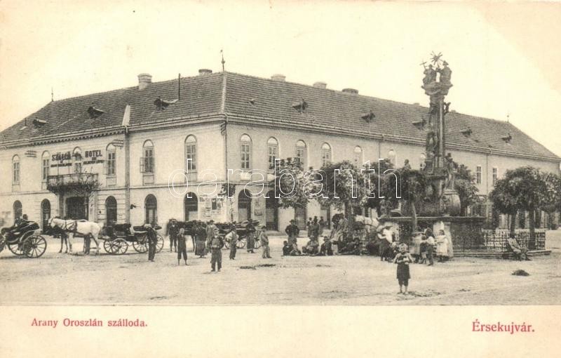 1911 Érsekújvár, Nové Zamky; Arany Oroszlán szálloda, Szentháromság sz...