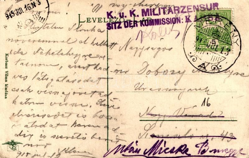 1915 Feketehegy-fürdő, Feketehegy, Schwartzenberg, Cernohorské kúpele (Merény, Vondrisel, Nálepkovo); Erdei sétány. Korbasz Vilma kiadása / forest promenade, spa + "K.u.K. MILITARZENSUR SITZ DER KOMMISSION: KASSA" (EK)