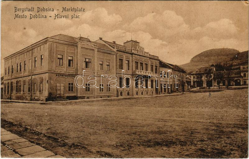 Dobsina, Dobschau; Fő tér, Takarékpénztár, Altstock Ede üzlete. Köhler...