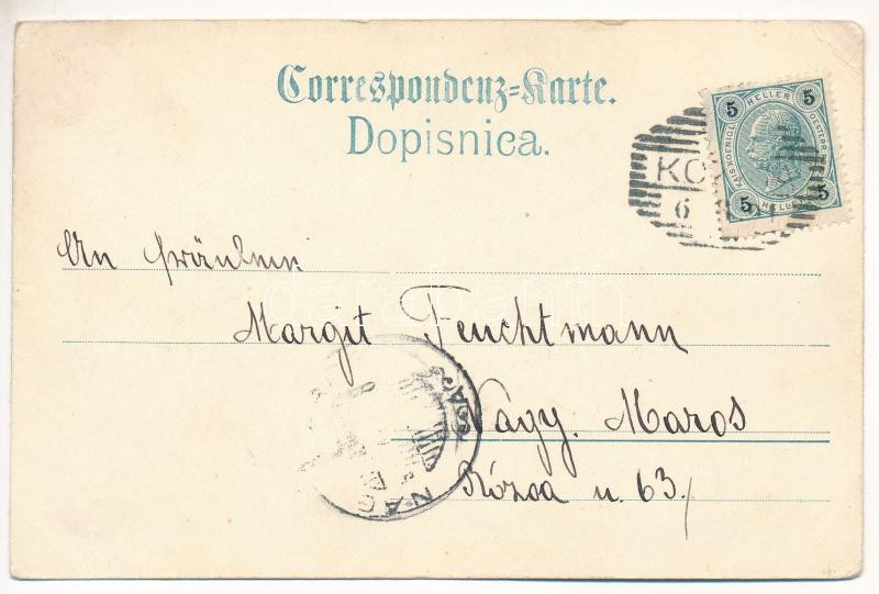 1901 Kozina, Hotel Kozina. Druck v. Kunstanstalt Rosenblatt Art Nouveau, floral, litho (EK)