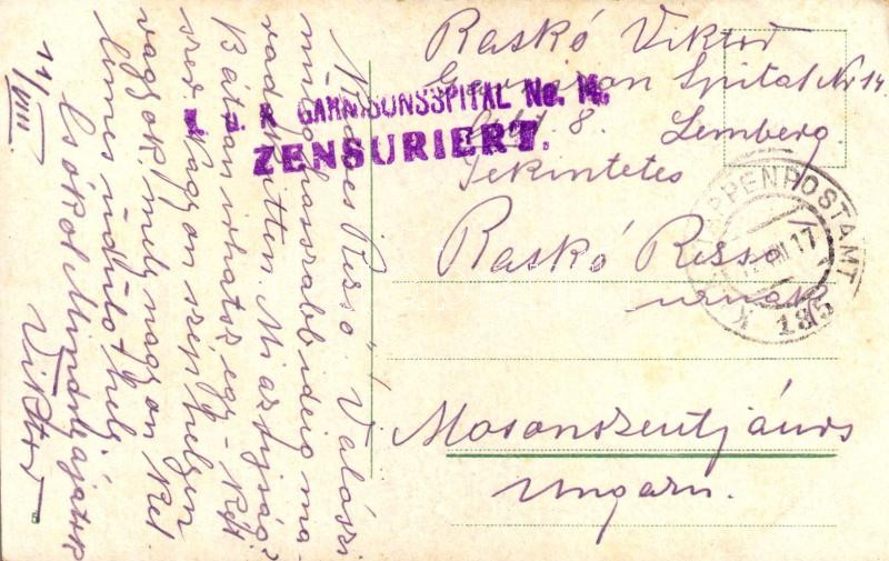 1917 Lviv, Lwów, Lemberg; Rynek / Markt / market + "K.u.K. GARNISONSSPITAL No. 14. ZENSURIERT" (EK)