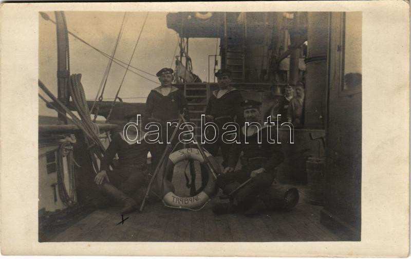 Description: 1915 SMS TRABANT az Osztrák-Magyar Monarchia Trabant-osztályú torpedóhajó (őrhajója) matrózai a fedélzeten / K.u.K. Kriegsmarine Matrosen / Austro-Hungarian Navy torpedo gunboat's mariners on deck. photo