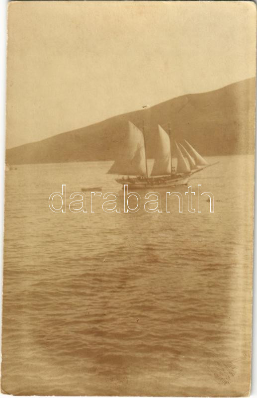 Description: Első világháborús vitorlás hajó egy osztrák-magyar hajóról felvéve / K.u.K. Kriegsmarine / WWI sailing ship's photo taken by an Austro-Hungarian mariner. photo