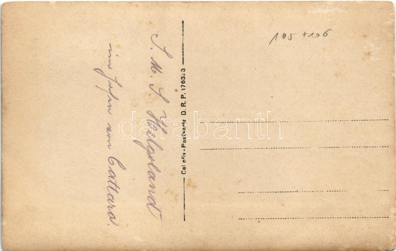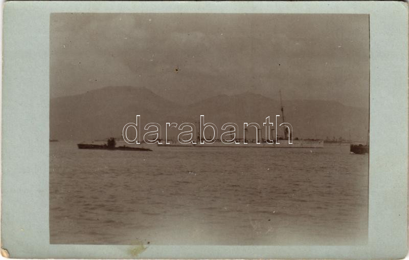 Kotor, Cattaro; SMS Helgoland az Osztrák-Magyar Haditengerészet Helgoland-osztályú gyorscirkálója / K.u.K. Kriegsmarine Rapidkreuzer / WWI Austro-Hungarian Navy light cruiser. photo (Rb)