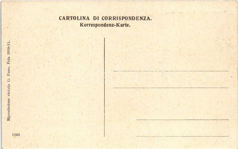 Description: Mitrailleusen Batterie Bemannung. K.u.K. Kriegsmarine SMS Zara / SMS Zara Osztrák-Magyar Monarchia Zara-osztályú torpedóhajó (őrhajója) személyzete kapitánnyal a fedélzeten / Austro-Hungarian Navy Zara-class torpedo cruiser, crew on board with captain. G. Fano 1910-11. 1545.