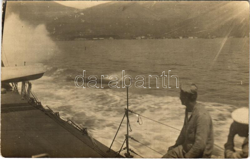 Osztrák-magyar Tátra- osztályú romboló torpedó gyakorlat közben / K.u.K. Kriegsmarine / Austro-Hungarian Navy Tatra-class destroyer's torpedo practice. photo