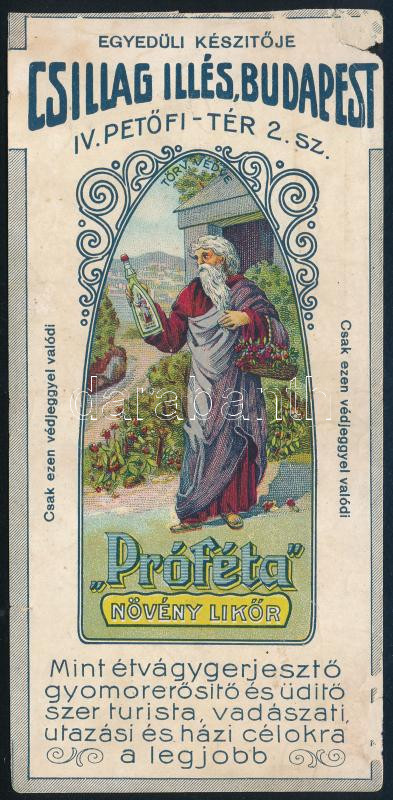Csillag Illés Budapest Próféta növényi likőr számolócédula, szakadások...