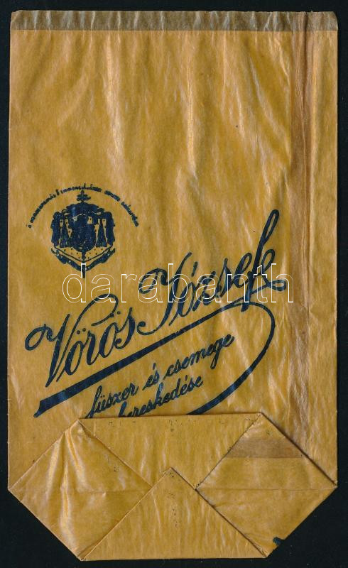 cca 1910-1920 Esztergom, Vörös József fűszer és csemege kereskedése, Vörös-féle pörköltkávé reklám papírtasak, 13x8 cm