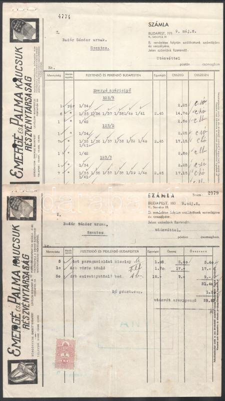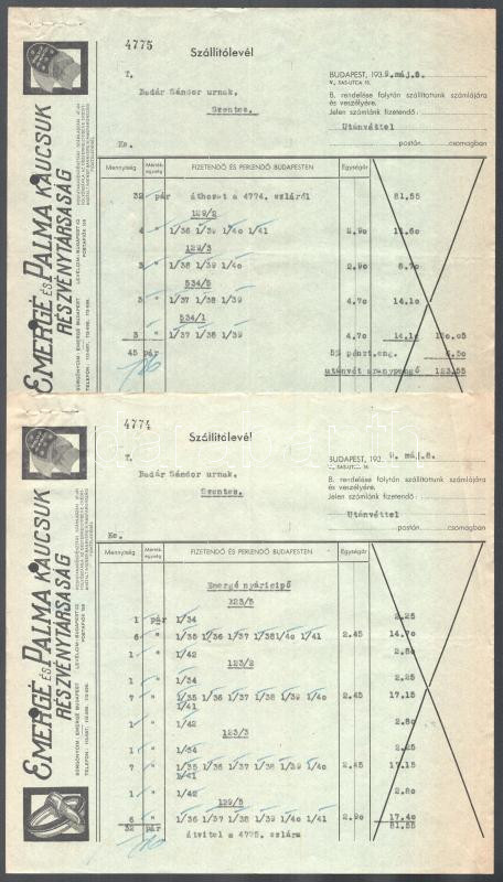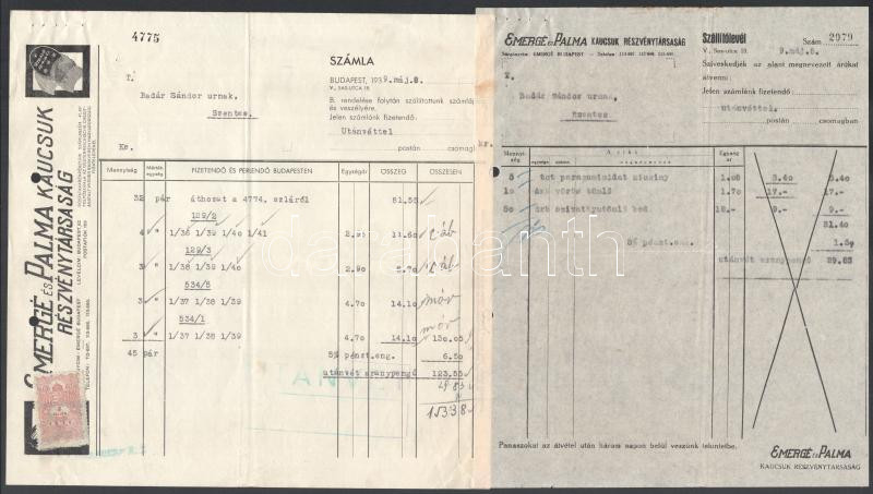 cca 1940, Emergé és Palma Kaucsuk Részvénytársaság és Emergé Kerékpár 8 darab fejléces számlája és szákllítólevele
