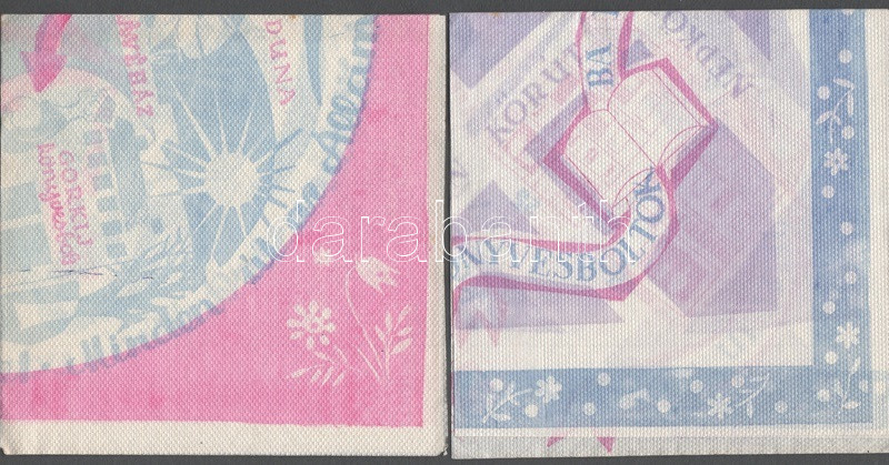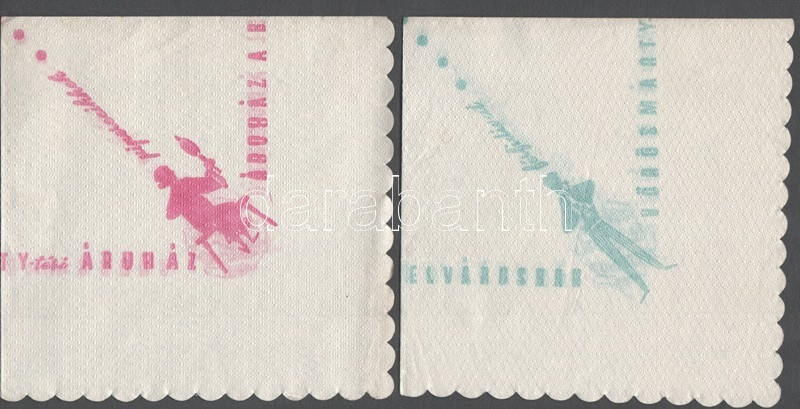Description: cca 1960-1970. 4 db retró reklámos szalvéta: "Minden út az Állami Könyvesboltokba vezet" (2 különböző) -- Vörösmarty-téri Áruház - áruház a belvárosban (2 különböző)