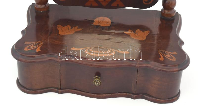 Antik fiókos fésülködő tükrös szekrény, kopással, 52x44x25 cm