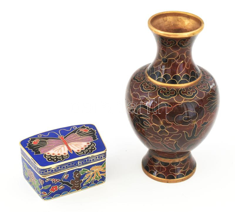 Réz cloisson rekeszzománc vázácska és kis pillangós ékszeres doboz 10 ...
