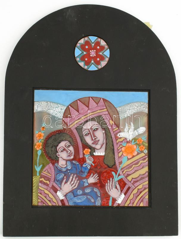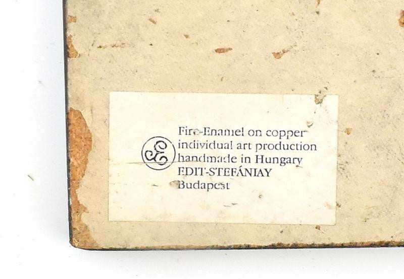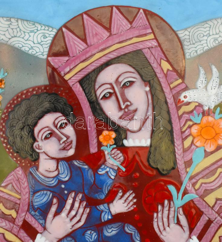 Stefániay Edit (1936-2010): Mária a kisdeddel. Tűzzománc, réz lemezen....