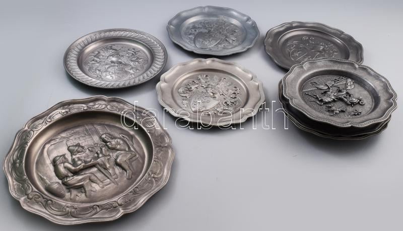 10 db ón tál. modern, német plasztikus darabok, címerekkel, jelenetekkel d: 22-30 cm