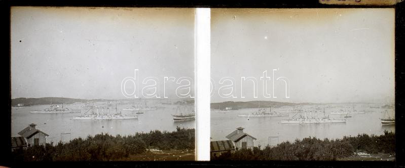 cca 1914 Az osztrák-magyar haditengerészet hajói, sztereo üveg dia 13x6 cm