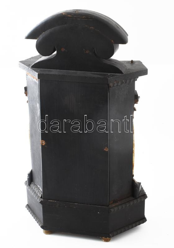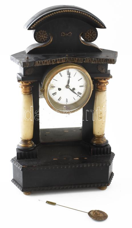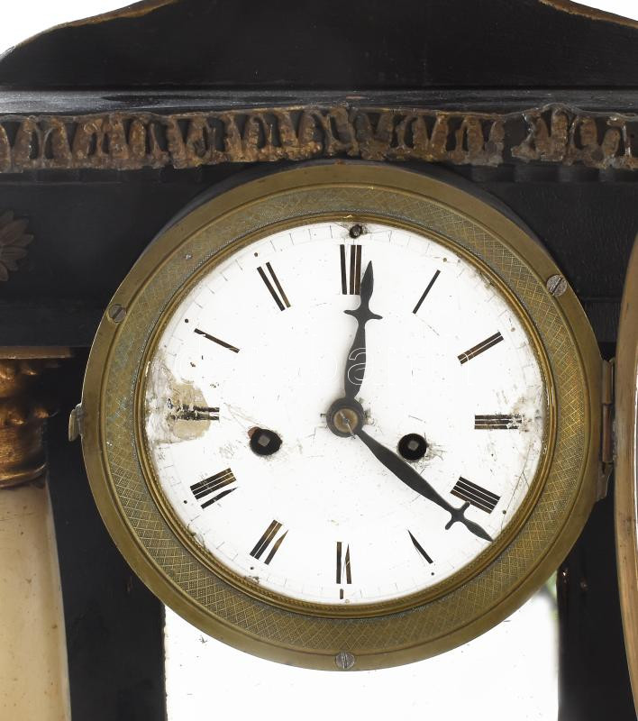 Biedermeier asztali óra oszlopos, feles ütős szerkezet, működik, számlap sérült 45x55 cm