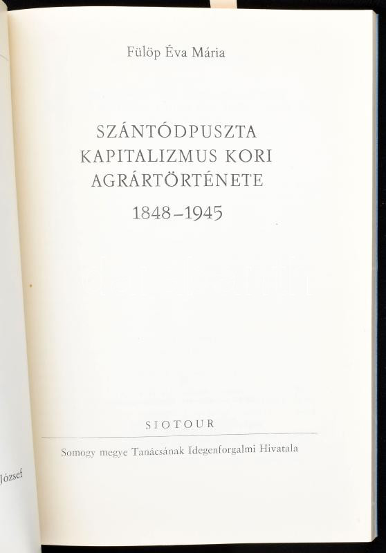 Fülöp Éva Mária: Szántódpuszta kapitalizmus kori agrártörténete 1848-1945. hn., 1981-1985, Siotour, Somogy megye Tanácsának Idegenforgalmi Hivatala. Fekete-fehér fotókkal illusztrált. Kiadói papírkötés, kissé kopott borítókkal.
