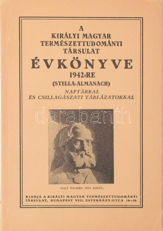 A Királyi Magyar Természettudományi Társulat évkönyve 1942-re (Stella-Almanach.) Naptárral és csillagászati táblázatokkal. Bp.,1942., Kir. M. Természettudományi Társulat. Kiadói papírkötés.