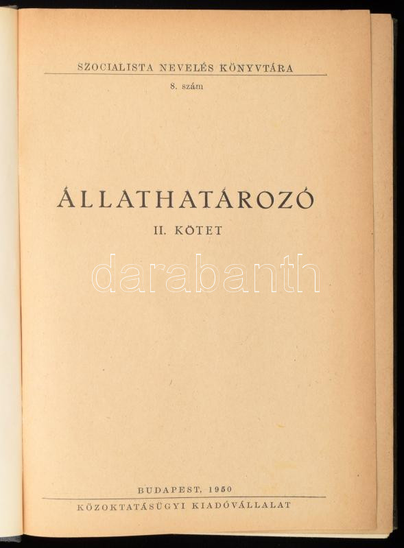Móczár László: Állathatározó. II. köt. Szerk.: - -. Szocialista Nevelés Könyvtára 8. szám. Bp., 1950., Közoktatásügyi Vállalat, (Egyetemi-ny.) Kiadói egészvászon-kötés.