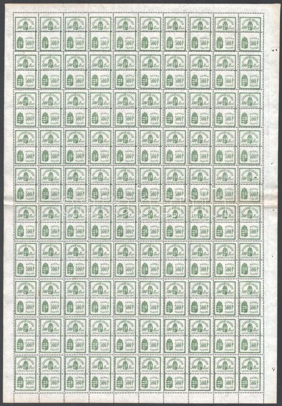 Számlailleték bélyeg 1946 500P 100-as teljes ív (90.000)