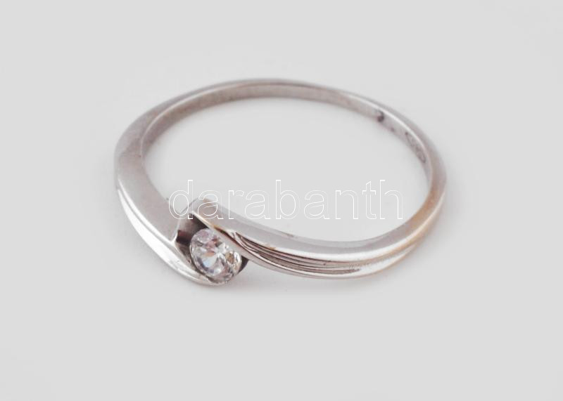 Arany (Au) 14K fehérarany soliter köves gyűrű, jelzett, méret: 49, bruttó: 1,3 g