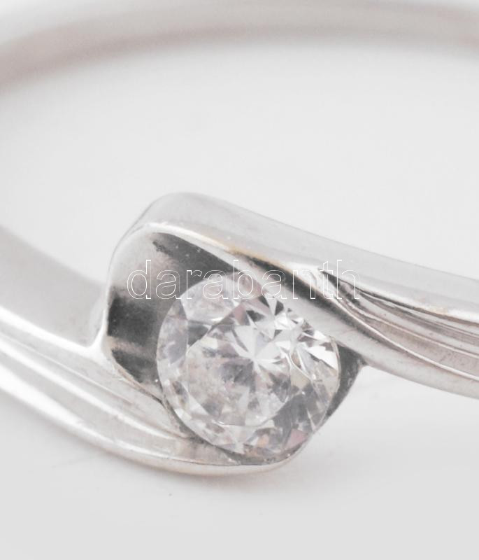 Arany (Au) 14K fehérarany soliter köves gyűrű, jelzett, méret: 49, bru...