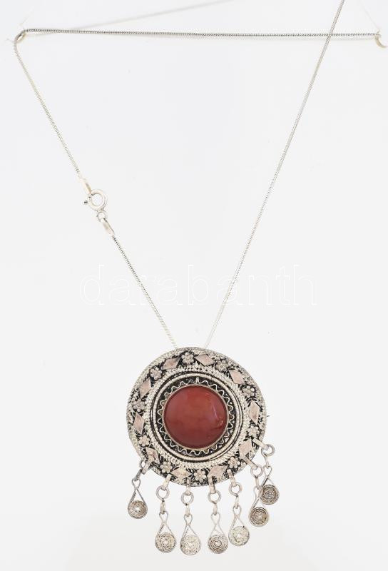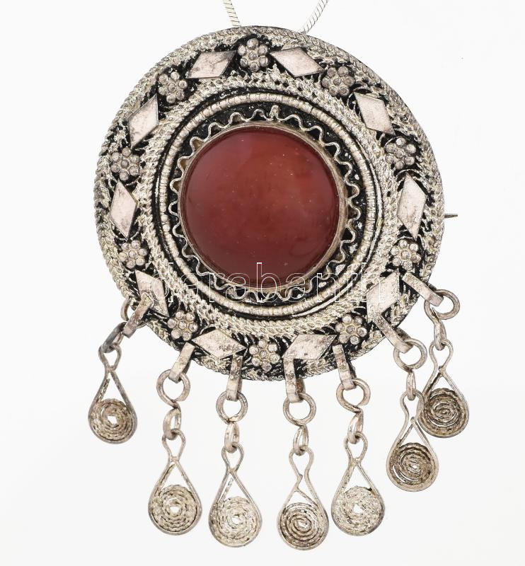 Ezüst (Ag) bross / nyaklánc, karneol berakással, jelzett, bruttó: 13,5g