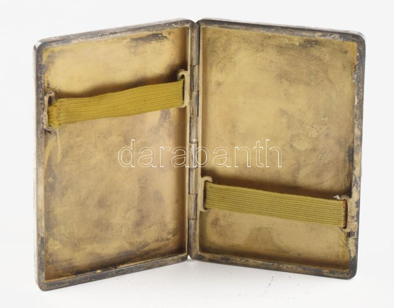 Ezüst (Ag) cigaretta tárca, gilosált díszítéssel, hiányos zárral, jelzett, bruttó 47g