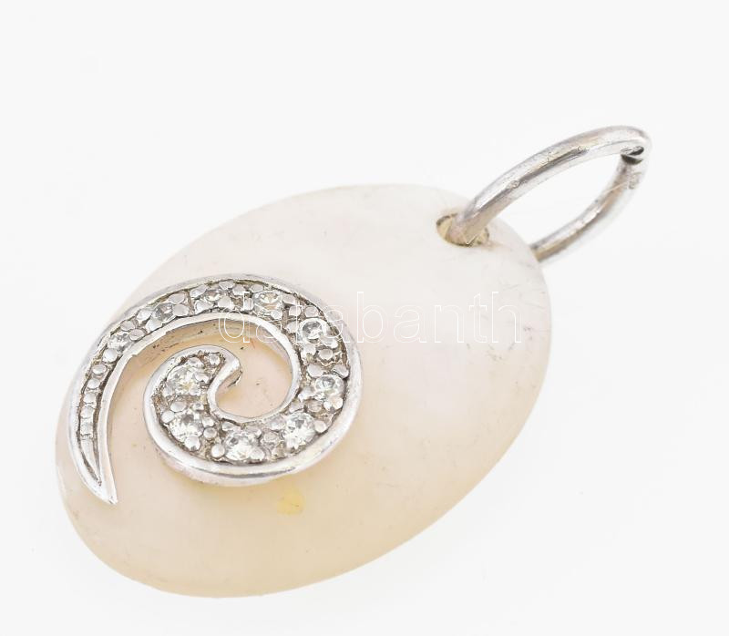 Gyöngyház medál ezüst (Ag) rátéttel, jelzett, 2,5×1,8 cm, bruttó: 4,3 ...