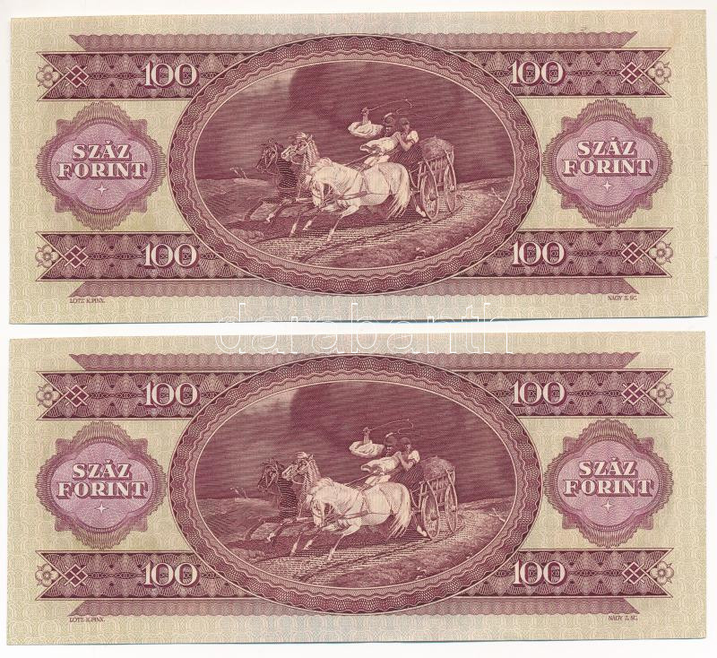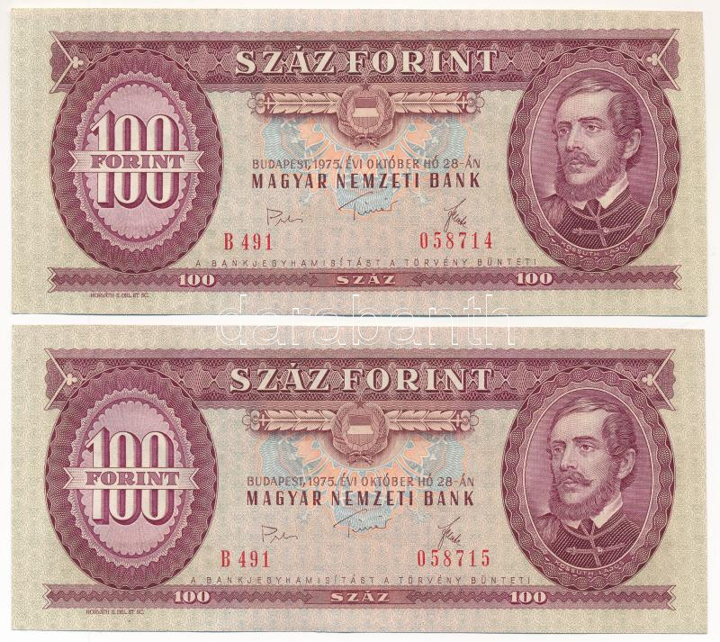 1975. 100Ft (2x) sorszámkövetők "B 491 058714 - B 491 058715" T:F szép papír