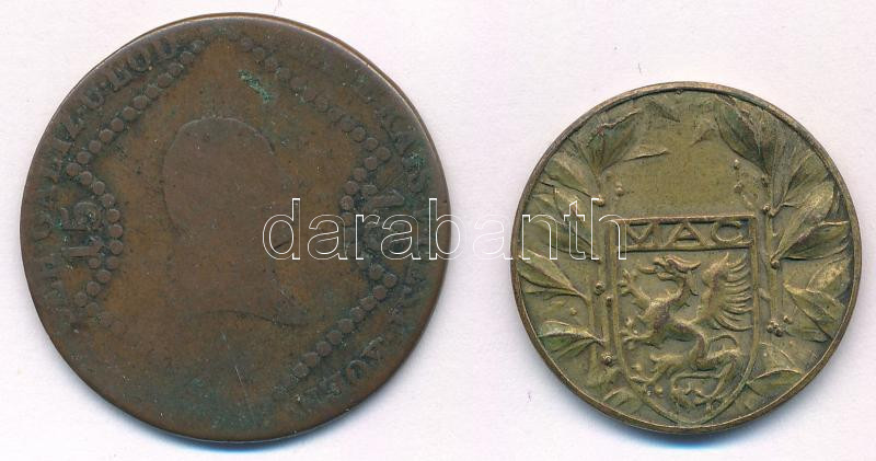 Vegyes: 1807? 15kr Cu "I. Ferenc" + ~1920-1930. "MAC / Magyar Athletikai Club 1875" aranyozott bronz díjérem (28mm) T:F,XF