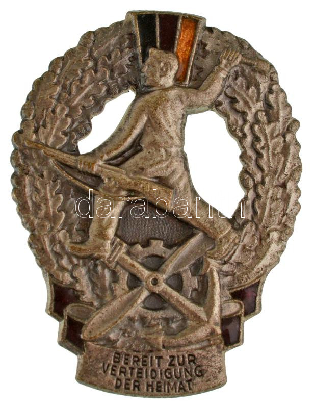 GDR ~1950-1970. "Bereit zur verteidigung der Heimat (Ready to defend the Homeland)" Fe badge with synthetic resine (~44x34mm) C:AU