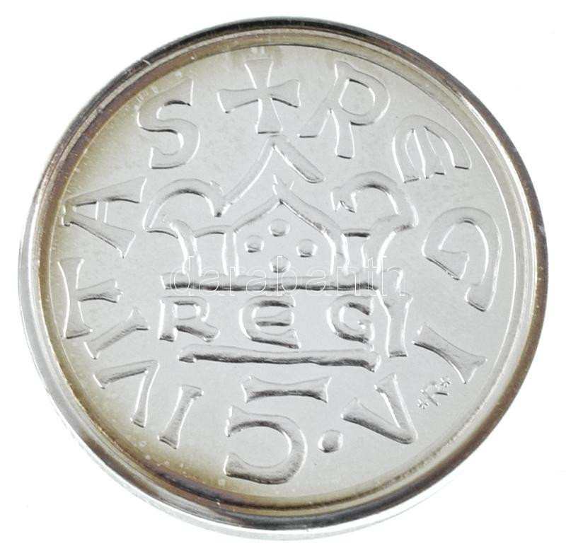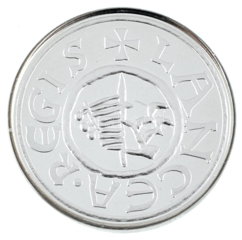 DN "A magyar címer kialakulásának történelme pénzérméken - Lancea Regis ezüstdenár" ezüstözött fém emlékérem kapszulában, tanúsítvánnyal (20mm) T:PP patina